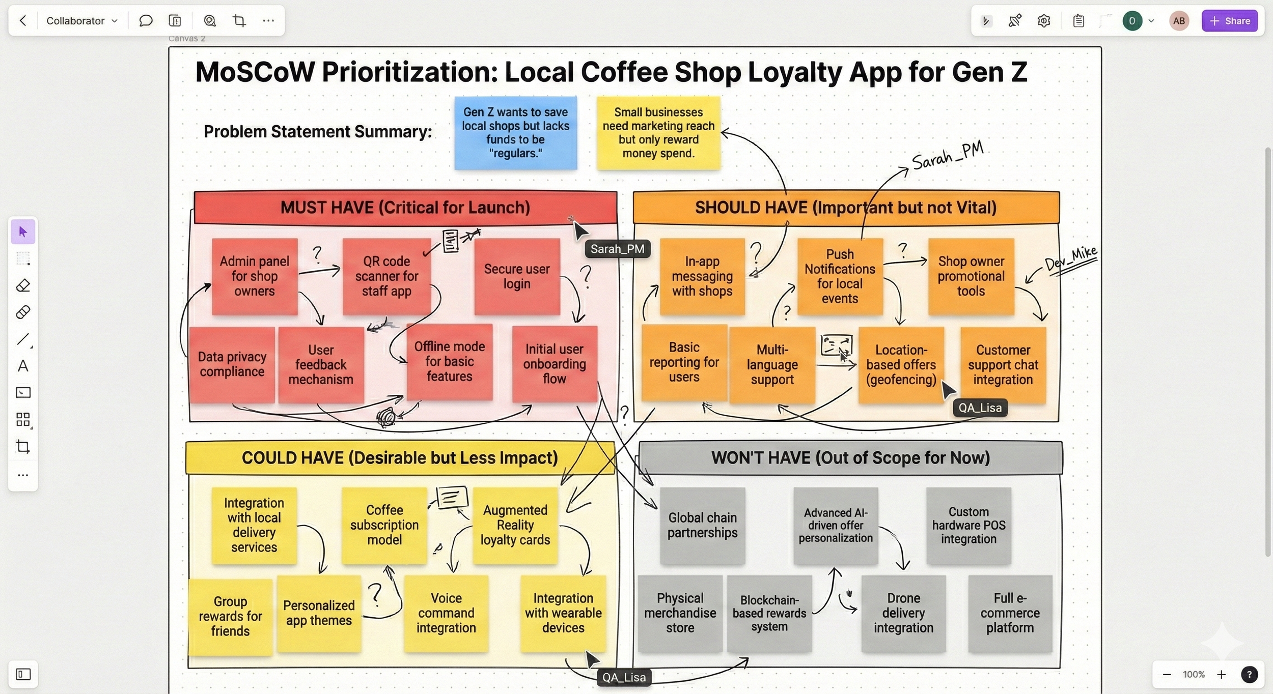 The problem statement: Gen Z consumers want to save their local coffee shops, but they lack the disposable income to be 'regulars.' Small businesses need marketing reach but can only reward monetary spend.